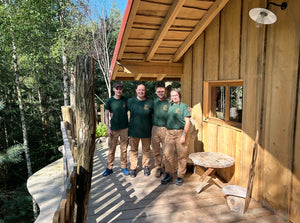 Afin de privilégier les circuits courts, les petits déjeuners et paniers repas sont proposés par nos producteurs locaux. Tous les matériaux de construction sont issus de forêts locales à gestion durable. Le fonctionnement des installations est assuré par les artisans locaux.